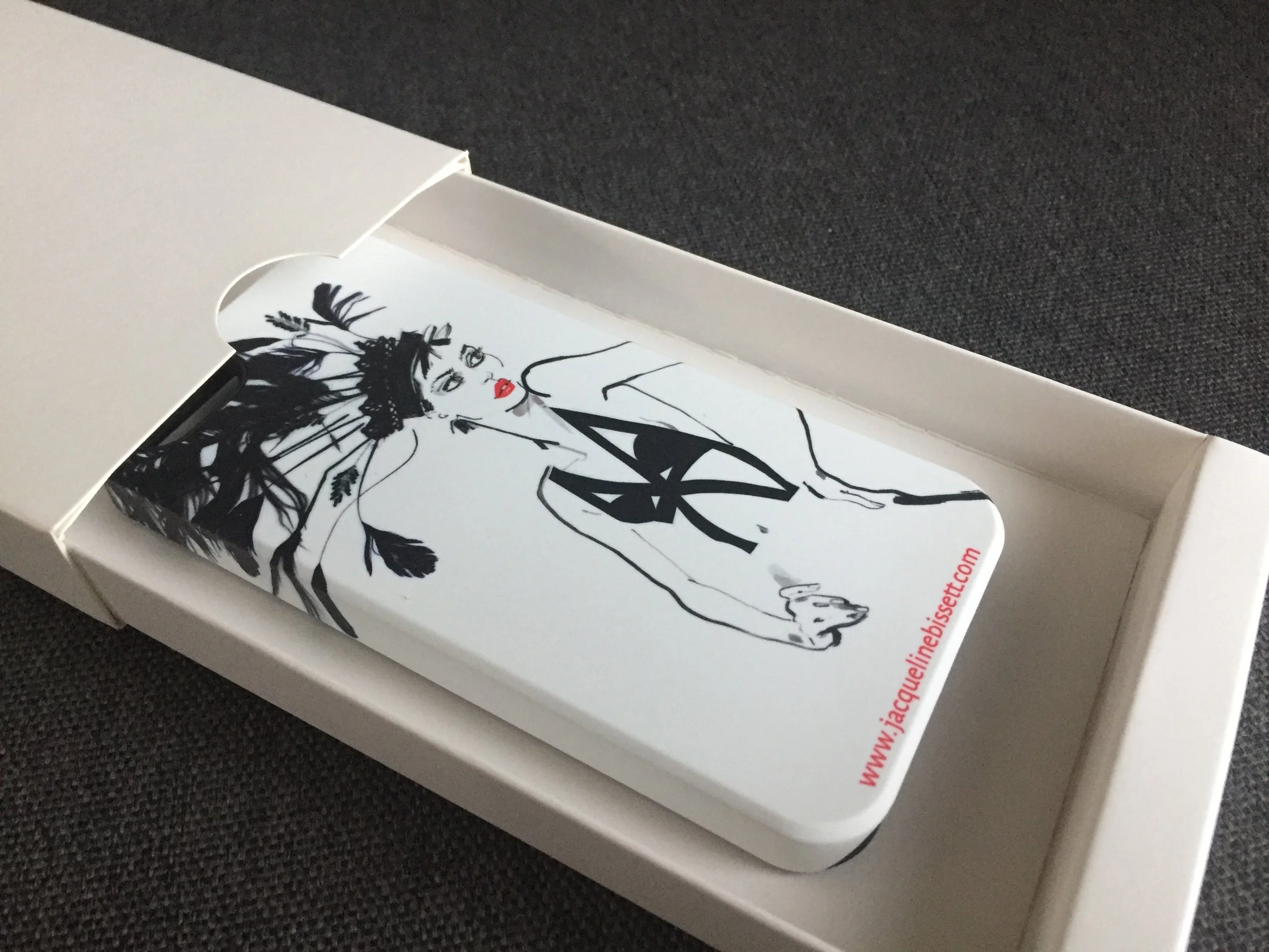I have recently sourced new phone cases that are available in most phone models- these come in pure white boxes and gift wrapping is available (see below) They are a little more expensive than my usual line so please email me enquiries@jacquelinebissett.com for a quote.